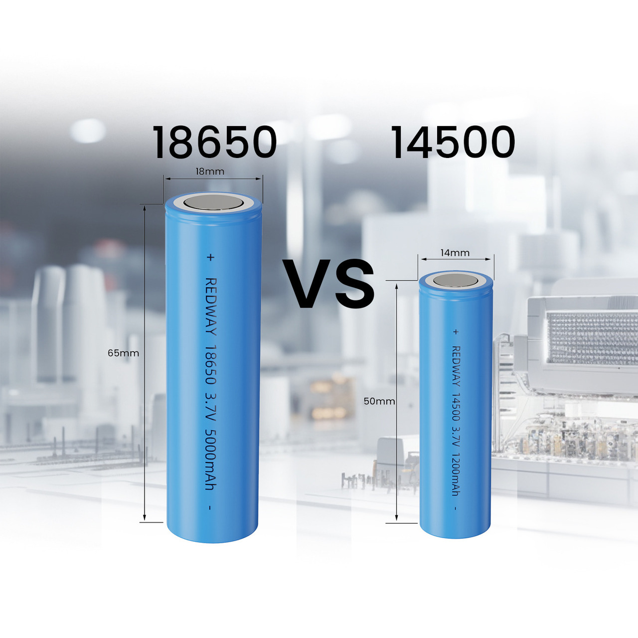 18650 batteries are cylindrical with a diameter of 18mm and a length of 65mm, while 14500 batteries are smaller, measuring 14mm in diameter and 50mm in length.
